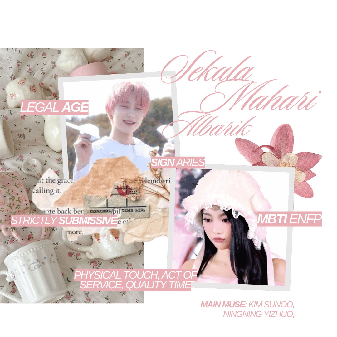 Bak lembut lantunan peri di ladang kanigara yang dapat menggenggam gender mana pun, Sekala Mahari Albarik memperkenalkan dirinya sebagai seorang genderfluid. Kalaβkamu bisa memanggilku begitu, memiliki personal yang sangat clingy, sehingga bukan nggak mungkin aku akan berubah menjadi koala ketika menghabiskan waktu bersama kamu. OhβKamu juga harus siap dengan segala bentuk kecentilan and my endlessly laughing-at-random-things! Tapi tenang saja, aku juga bisa jadi pasangan yang dewasa, dan dengan mudah menyesuaikan diriku.Lovey-dovey kind of relationship is definitely what Iβm most into! I love showering my cherished ones with sweet and simple affection also. Jadi, jangan kaget kalau aku suka peluk kamu tiba-tiba, throwing you some sweet words, or even remembering little things about you. I believe love doesnβt always have to be big or fancy; sometimes, hal-hal kecil yang tulus justru paling berkesan. Aku juga suka banget imagine, and I write it in detail as well!Sebenarnya, dalam hal pacaran, aku lebih prefer hubungan yang santai tapi tetap dewasa. With keeping the flow but still enjoyable, dan bisa berjalan dengan relax. I keen on to entwine too muchβyang terutama saling pengertian. I want my partner to feel that my love will always be steady and reliable, no matter what happens. So that my partner will feel my love is as full as always.Since Iβm also a busy lilβ worker bee, there will be times when I canβt give you fast attention or shower you with love to handle all the sweet and lovely bubbles you send me, but no worries dearest! Kamu gak akan pernah kehilangan kabar sedikitpun dari aku. Chatroom kita nanti akan dipenuhi oleh live report aku. Iβll spill my bite-sized updates adventures with you in the cutest, loveliest way ever!You can trust me with all of your heart, and I can land my ear to you. I love it when my partner shares their things with me. Let me be your Prudential, always listening always understanding. Kalau kamu hanya butuh bahu, that's okay too. I offer you my best and most sincere companion!Dalam dunia yang penuh warna ini, aku senang mengeksplorasi berbagai gaya, terutama saat aku memilih untuk memakai skirt atau dress yang imut, dalam sesi yang lebih intimate atau NSFW. Rasanya menyenangkan bisa tampil dengan cara yang mencerminkan siapa aku saat itu, tanpa harus terikat pada peran gender tertentu. Jadi, mau βkah kamu melihat sisi diriku yang lain?